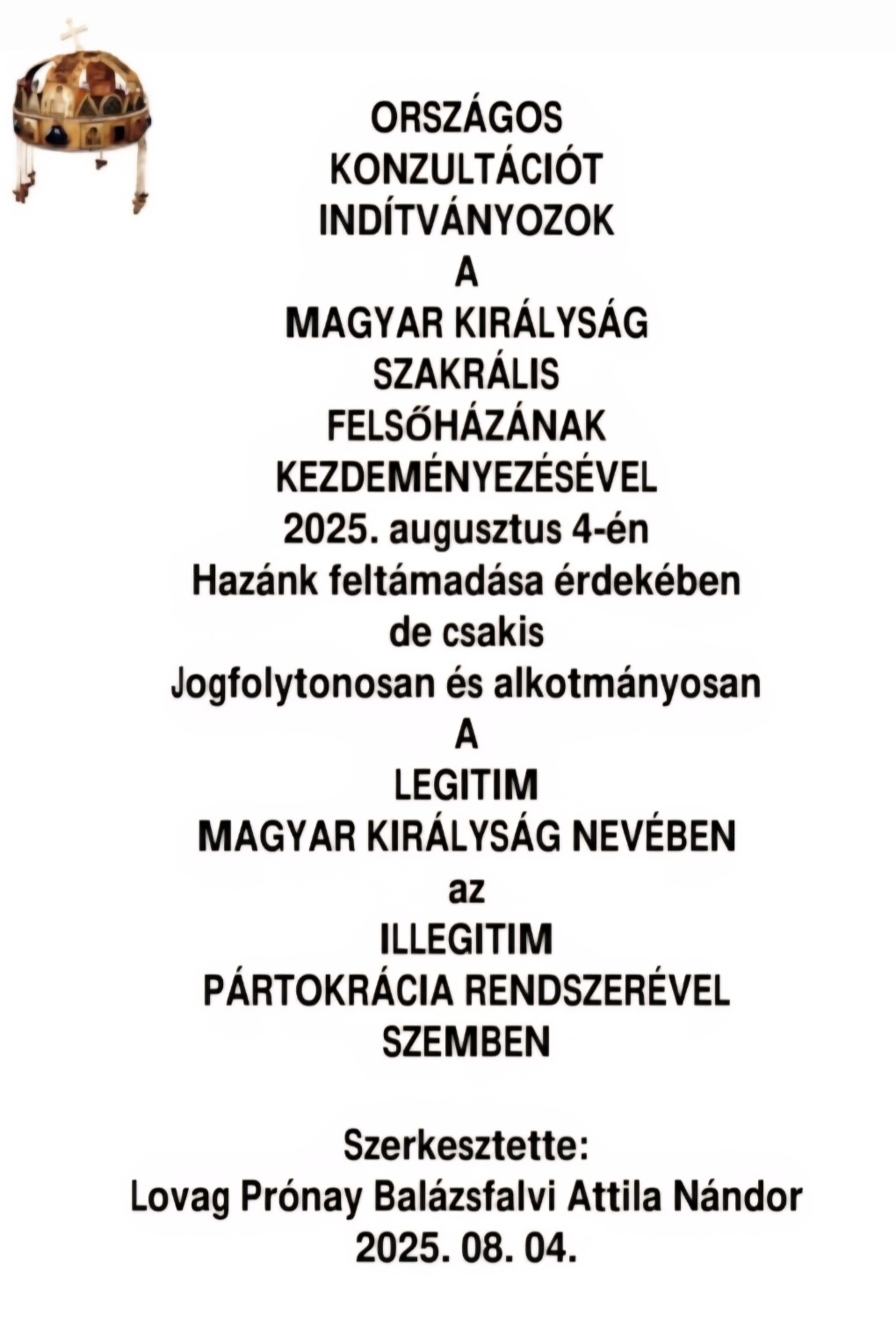 - HÁT EZ VAN A KIRÁLYSÁGUNKKAL, a SZAKRÁLIS MAGYAR KIRÁLYSÁG (IDEGLENES) FELSŐHÁZÁN belül, AMI FOLYAMATÁBAN TOVÁBB ÉL, és LÉTEZIK IS...